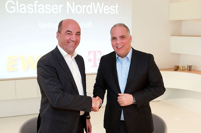 Deutsche Telekom and energy and telecommunications company EWE signed a contract that establishes a joint venture between the two companies, representing the next step in their collaboration. The joint venture is called “Glasfaser NordWest” (“NorthWest Optical Fiber” in English). The two companies also formally notified Glasfaser NordWest with Germany’s Federal Cartel Office.